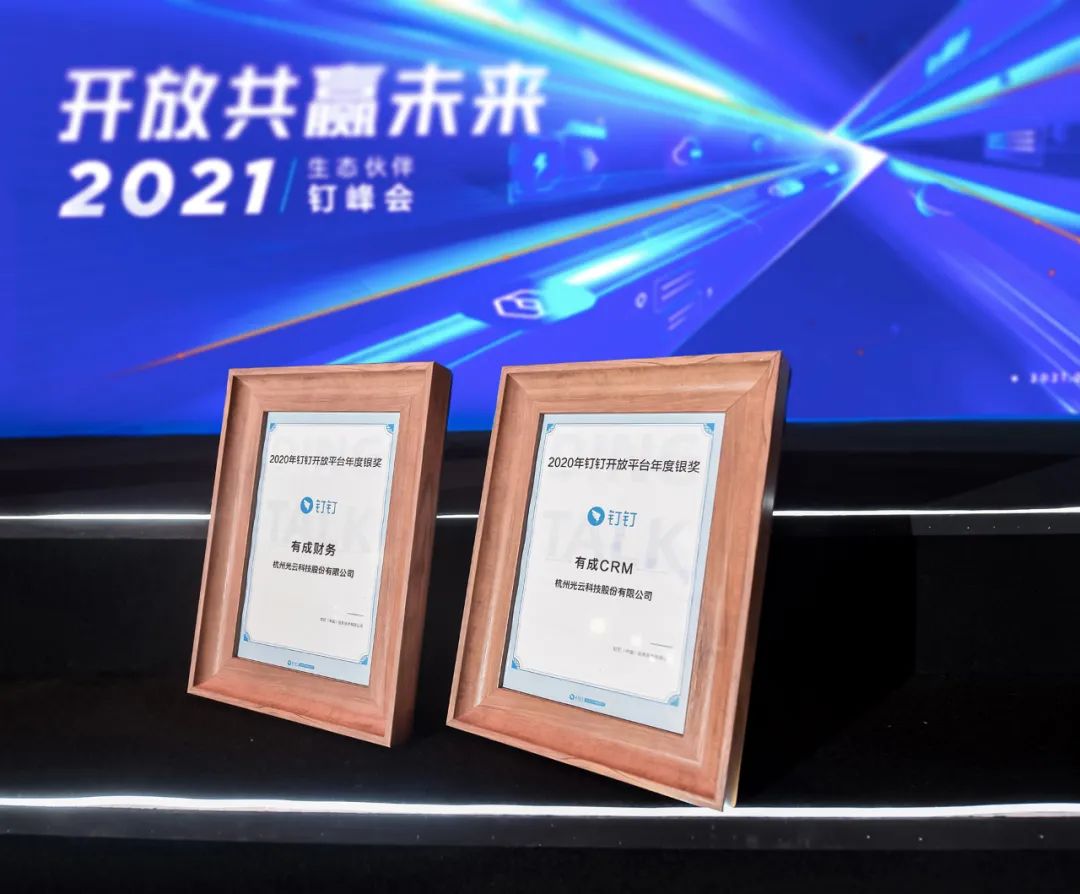 钉峰会 | 有成斩获两大奖项,携手业财联盟一起助力千万企业数字化转型